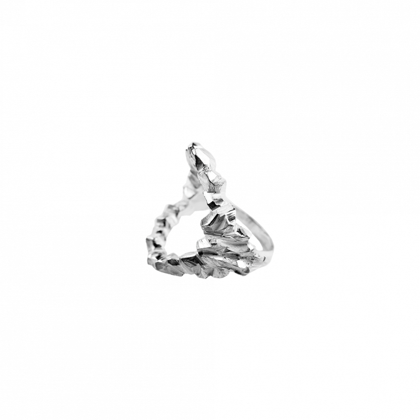 Osrednji elementi kolekcije 'Čisti kristal' so iskrive kristalne strukture, ki na videz delujejo, kot da so v simbiozi s človeškim telesom. Geometrijski kristali s svojimi ravnimi linijami in organsko rastjo ustvarjajo dinamično igro kontrastov; med grobim in nežnim, med organskim in geometrijskim. Oblike kristalov dopolnjujejo prosojni dragulji, ki poudarjajo njihov lesk in teksturo. Kolekcija je namenjena odločnim posameznikom z izostrenim občutkom za estetiko, ki ljubijo čiste linije v kontrastu z neukročeno naravo.