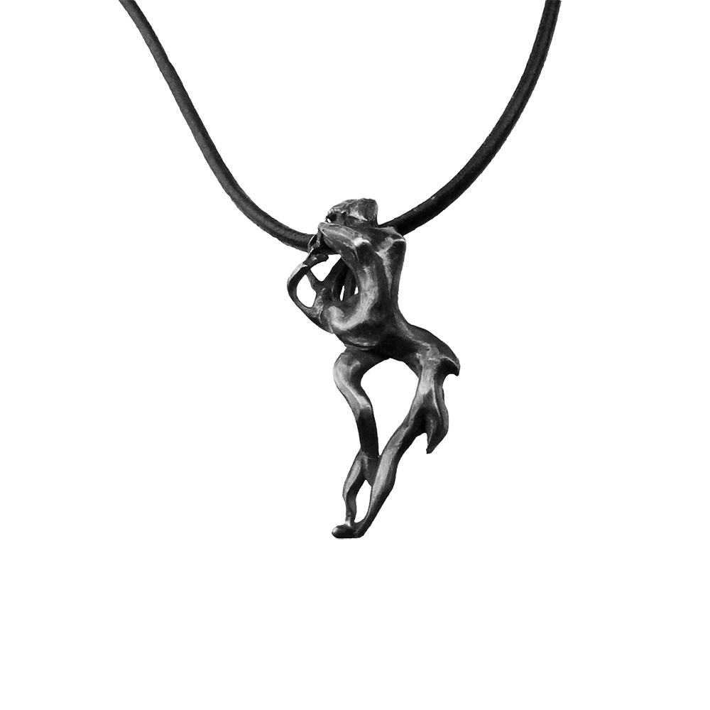 Figura gozdne boginje v temni barvi srebra, na usnjeni vrvice nastavljive dolžine.